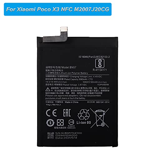 E-yiiviil Batteria di ricambio BN57 compatibile con Xiaomi Poco X3 NFC M2007J20CG, M2007J20CT con strumenti