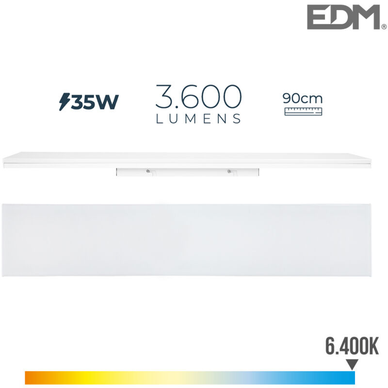 Acquista su Patner Iberia i migliori strumenti e accessori per la casa e il lavoro > Riferimento: E3/31751 Striscia LED 35W 6400K Luce fredda 3600Lm - Quantità Led 420 - Non Dimmerabile - Angolo di Apertura 110° - Avvio Rapido - No Flicker - Ra:80 - Hg:0,0Mg - 190Ma - Pf>0,9 - 220/240V 50Hz - Ip20 - 25000H - Classe A - Misure: 12X90X4,5Cm (Larghezza/Profondità/ Altezza) - Edm