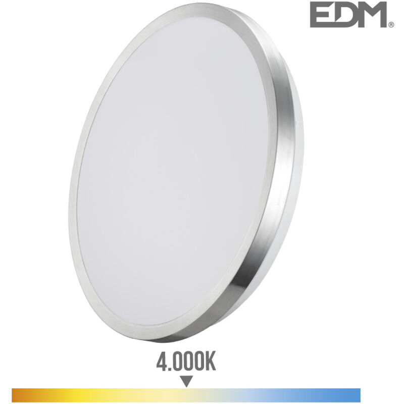 SUPER APPLIQUE DA SUPERFICIE LED 24W 2490lm 4000K LUCE DIURNA. STRUTTURA CROMATA GRADO DI PROTEZIONE IP20. CIRCOLARE, DIMENSIONI: Ø38x6,2cm (diametro/altezza) CLASSE F 220/240V NON REGOLABILE, PF 0,7, RA 80, ANGOLO DI APERTURA 120° EDM
