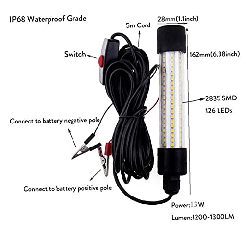 Eaarliyam Subacquea Luce di Pesca, DC / AC12-24V IP68 Impermeabile sommergibile Bianco della Luce di Pesca Subacquea Pesca Notturna Attrezzature Finder Lamp
