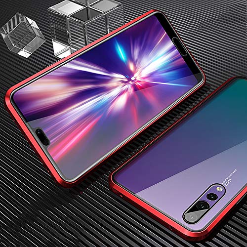 EabHulie Huawei P20 PRO Custodia, Montatura in Metallo con Adsorbimento Magnetico 360 Gradi Vetro temperato Copertura a Schermo Intero Case per Huawei P20 PRO Rosso