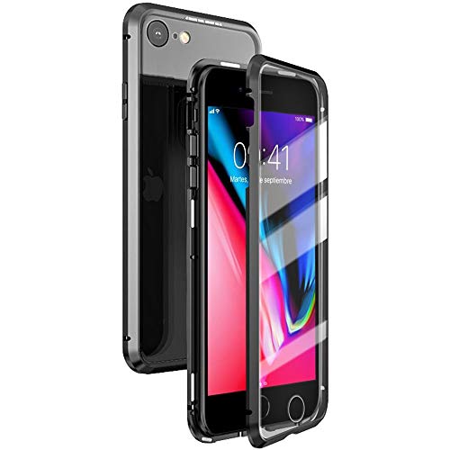 Eabhulie iPhone 8 Custodia, Montatura in Metallo con Adsorbimento Magnetico 360 Gradi Vetro temperato Copertura a Schermo Intero Case per iPhone 7 / iPhone 8 Nero