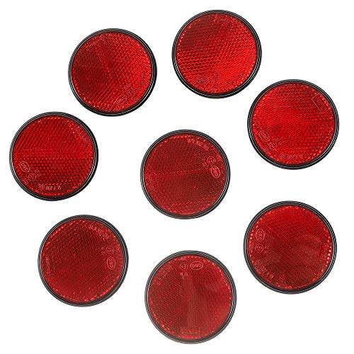 Eacalyc 8 x Catarifrangenti Rotondi Rimorchio Autoadesiva Rosso Riflettori Posteriori Rotondi Incollare per I Montanti del Cancello Caravan Rimorchio Bicicletta Camion o Macchine Agricole