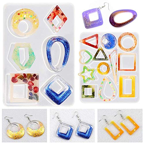 Eachbid Stampi Resina per Orecchini Collana Stampo in Silicone Epossidico Pendenti Ciondoli a Geometria con Ganci e Anello