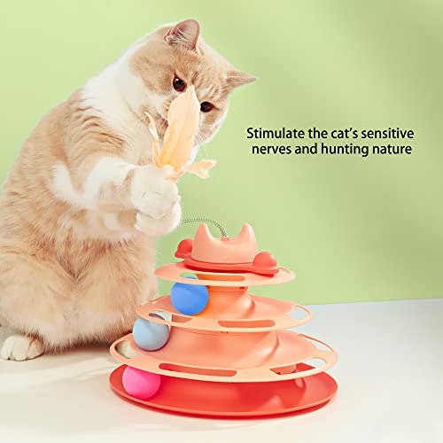 EACHPT Giochi Per Gatti, 4 strati Giochi Per Gatti In Casa, Giocattolo Gatto, con giocattolo bacchetta piuma di gatto, divertente rullo ginnico, 3 palline colorate, palla da pista girevole (arancia)