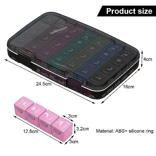 EACHPT Porta Pillole Settimanale a 7 Ampi Scomparti,Portapasticche Settimanale,Scatola per Medicinali di Grande capacità a 28 Scomparti,Sigillato contro lumidità,Pill Box per Medicinali,Vitamine