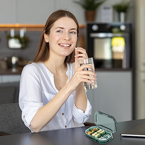 EACHPT Portapillole Tascabile, 2 Pezzi Porta Pillole Giornata, Portapillole in Plastica a 6 Scomparti + 4 Scomparti, Portatile Portapillole Piccolo Portapillole da Viaggio,Verde