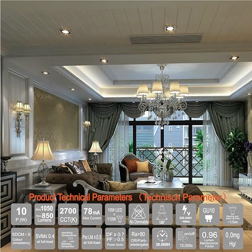 Molto comoda, basta scegliere una lampadina LED GU10 dimmerabile con potenza elevata e alta luminosità per ottenere un'elevata luminosità. Puoi anche impostarla su una potenza inferiore e un livello di luminosità più basso a lungo termine per soddisfare le tue esigenze quotidiane e controllare il risparmio energetico.