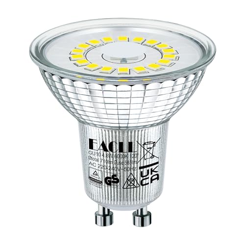 EACLL Lampadine LED GU10 4.8W Equivalente a Alogena 75W, Pacco da 10, 585Lumen 6000K Luce Bianco Freddo, Faretti AC 230V senza Sfarfallio, Angolo a Fascio 120° Spot, Non Dimmerabile Lampade Riflettore