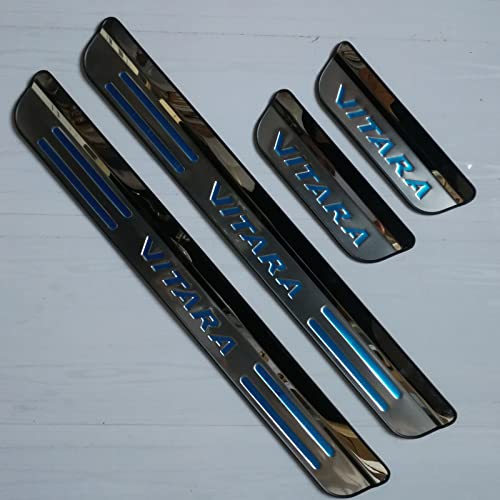 EAGLEG 4 Pezzi Acciaio Inox Battitacco per Auto Sticker, per Suz-uki Vitara 2015-2020, Esterno Battitacco Protezione Plates Anti-Graffio Scuff Adesivi Decorativi Accessori,Blue