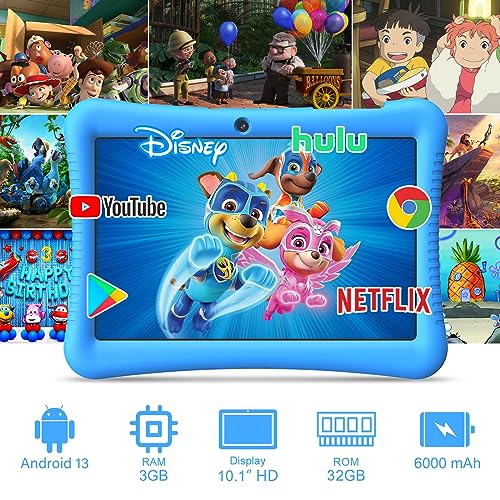 EagleSoar Tablet Bambini 10 Pollici Android 13 Tablet per Bambini Quad Core 3GB RAM 32GB ROM 6000mAh Tablet WiFi Bluetooth Controllo Parentale Apprendimento Educazione Tablet PC con Custodia (Blu)