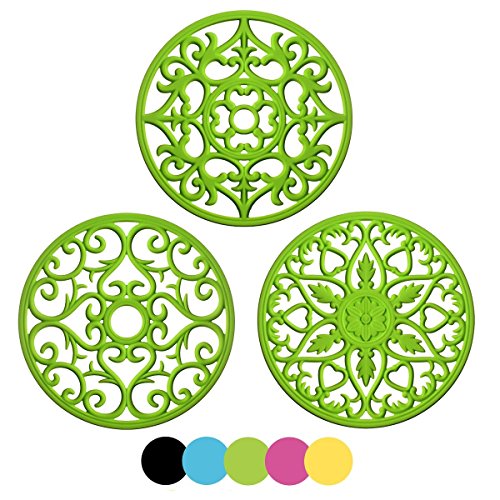 EANE Utensile da Cucina Multiuso in Silicone: sottopentola, apribarattolo, presina, Grande sottobicchiere, poggia Cucchiaio, Tappetino Flessibile, Durevole, Resistente al Calore, 3 Pezzi (Green)