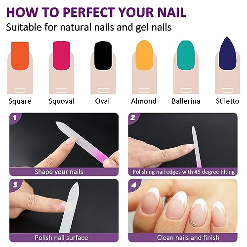 【Cura delle unghie sicura】 la lima in vetro a doppia superficie liscia completa qualsiasi manicure in qualsiasi direzione senza danneggiare l'unghia, forma perfettamente naturale lasciandola liscia, contribuendo alle buone condizioni delle unghie.