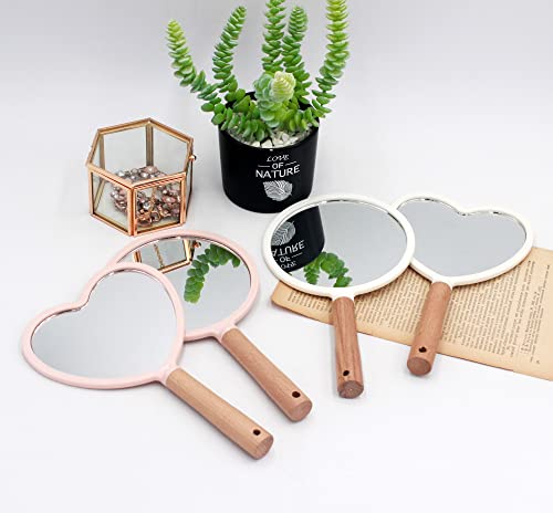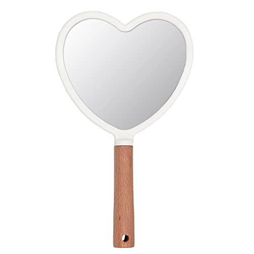 Eaoundm Specchio portatile da viaggio per trucco, piccolo specchio da viaggio in legno per uomini e donne (cuore bianco)