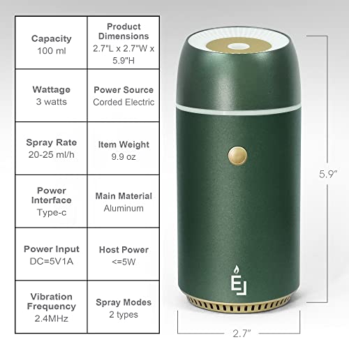 Earnest Living Essential Oil Diffusers Car Air Fresheners for Essential Oils Air Freshener Car Aromatherapy Diffuser 100ml Car Diffuser Timers Night Light Auto Off Function USB Portable Green Gift