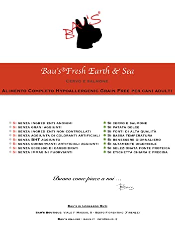 Bau's Earth & Sea 9Kg Cervo Salmone Grain Free crocchette Cane Hypoallergenic