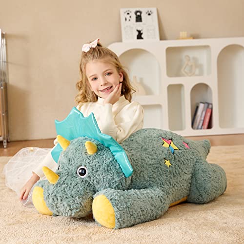 EARTHSOUND Peluche Dinosauro Triceratopi Gigante Morbido Giocattolo,Grande Animali 78cm XL XXL Enorme Giganti Enormi Jumbo Animale,Regali per Bambini