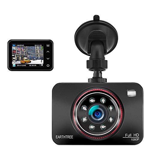 EARTHTREE Dash Cam, videocamera Dashboard Full HD 1080P 2.7"LCD da 170 Gradi DVR Macchina Fotografica con Visione Notturna infrarossa G-Sensore WDR Loop Recording Motion Detection modalità di parcheg