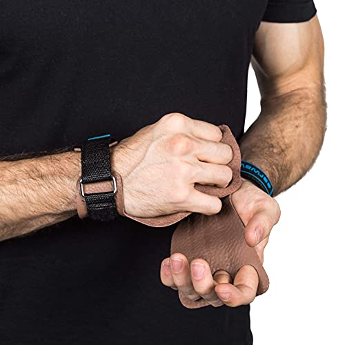 Earwaves ® Rex Grips 2 & 3 Fori - Guanti paracalli Crossfit in Cuoio per Uomo e Donna. Hand Grips manopole in Pelle per Ginnastica, trazioni, Pull up, Muscle up, Barra, Anelli. (L, 3 Holes)