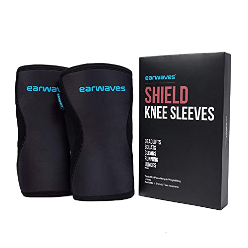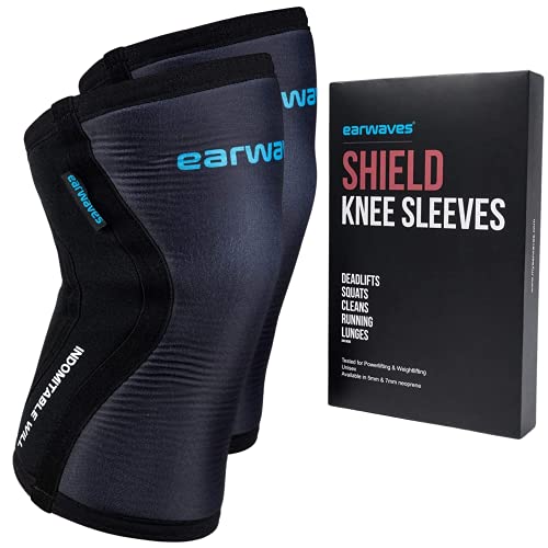 Earwaves ® Shield Knee Sleeves - Paio di Ginocchiere in Neoprene, 5 mm & 7 mm, per Crossfit, Sollevamento Pesi, pesistica, Squat, Lunges (XL - 7 mm, Nero)