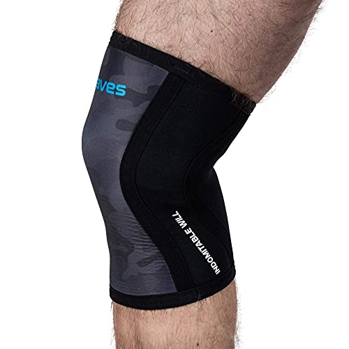 Earwaves ® Shield Knee Sleeves - Paio di Ginocchiere in Neoprene, 5 mm & 7 mm, per Crossfit, Sollevamento Pesi, pesistica, Squat, Lunges (S - 7 mm, Nero Militare)
