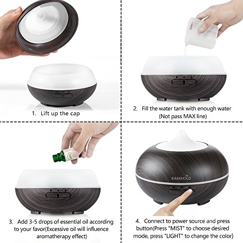Easehold 150ML Diffusore di Oli Essenziali Aroma Diffusore di profumo grana di Diffusore Umidificatore Ultrasonico fresca aroma diffusore di essenze con luce LED per SPA, Yoga, Casa