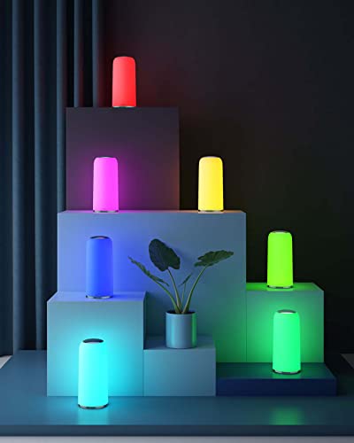 EASEMO Lampada da Comodino, 256 RGB Luce Notturna LED Controllo Tattile con Funzione di Memoria, Cilindro Dimmerabile Lampada da Tavolo con Funzione Timer per Soggiorno, Camera da Letto e Ufficio