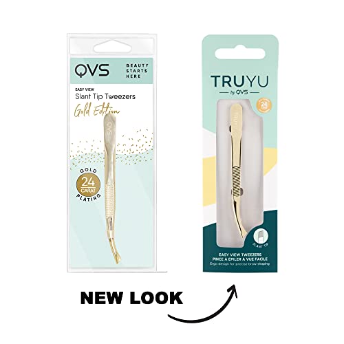 QVS Easi View Tweezer with 24 Carat Gold Plating Stainless Steel Slant Tip