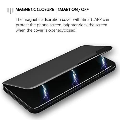 EASSGU Custodia in Pelle per Redmi Note 11 Pro/Note 12 Pro(4G) / Note 11E Pro (6.67" Inches) Finestra Laterale Flip Cover in Pelle PU Resistente ai Graffi Custodia Protettiva - Nero