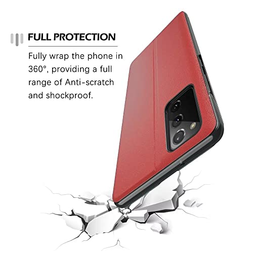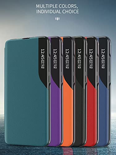 EASSGU Custodia in Pelle per Redmi 10C / POCO C40 (6.71" Inches) Finestra Laterale Flip Cover in Pelle PU Resistente ai Graffi Custodia Protettiva - Rosso