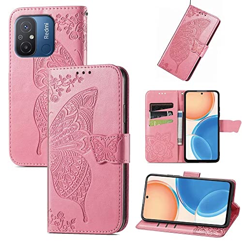 EASSGU Custodia per Redmi 12C / Redmi 11A (6.71" Inches) Flip Folio Cover Magnetica per Telefono in Pelle con 3 Slot per Schede 1 Portafoglio, Case - Rosa