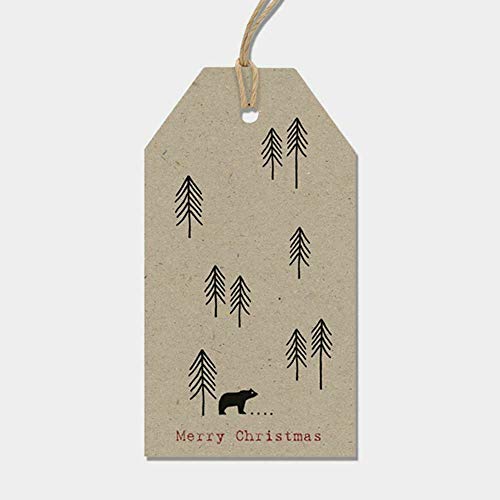 East of India - Set di 6 cartellini per regali natalizi serie Woodland, carta Kraft marrone
