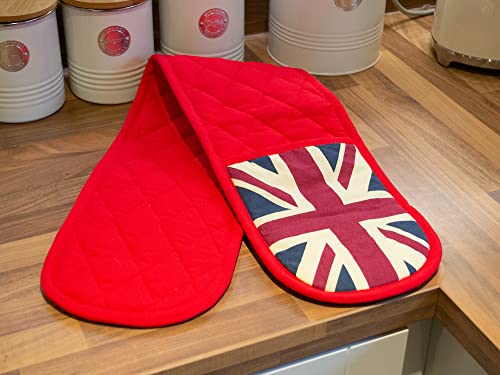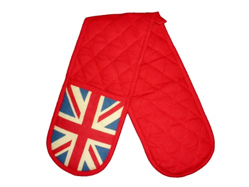 East2eden - Set da cucina in tessuto, comprensivo di grembiule, guanto da forno e strofinaccio, motivo: Union Jack, Red, doppio guanto da cucina