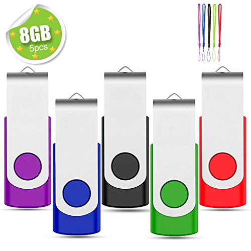 Eastbull - confezione da 5 pezzi di chiavette USB 2.0 Flash Drive dal design girevole, penna memory stick ripiegabile per archiviazione (colori misti con cordino) Multi-colours 8GB