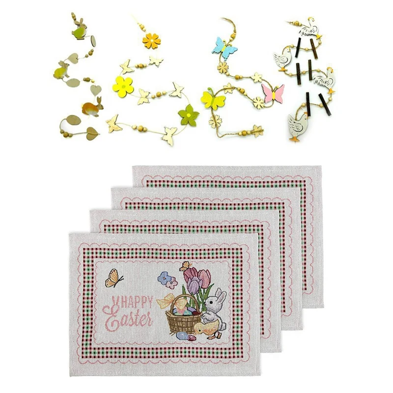 4 Pcs Easter Wooden Hanging Pendant Rabbit Butterfly Flower Chicken Shape & Set of 4 Easter Kitchen Placemats