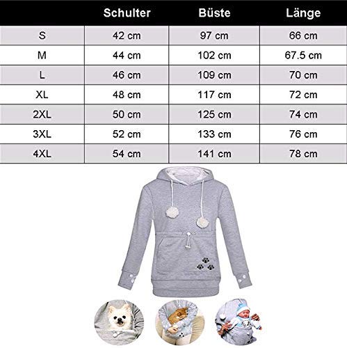Eastern Corridor-EU Maglione Unisex con Cappuccio con Gatto Borsa Gatto Felpa Felpa con Cappuccio Felpa Gatto Modello Sottile di Colore Grigio. XXXL