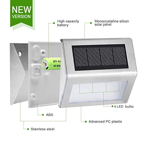 EASTERNSTAR [12 pacchi] Luce per scale solare, 4 LED Luci solari da esterno Inossidabile Acciaio impermeabile Lampada per recinzione Giardino Scala Percorso Strada Patio Parco Ponte