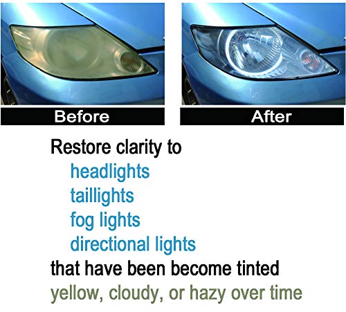 This headlight lens restoration kit is designed to restore clarity to headlight lenses, taillights, fog lights, and directional lights that have become yellowed, cloudy, or hazed over time