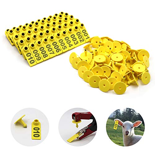 Tag auricolari di pecora di colore giallo o verde 001-100. Kit di etichette auricolari, più comodo e risparmiare tempo.
