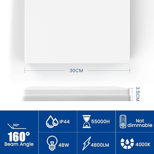 EASY EAGLE Plafoniera Led Soffitto Quadrata 48W Moderni Luce 4000K 4800LM IP44 Lampada per Bagno Cucina Camera da Letto Sala Soggiorno Corridoio Ufficio Cantina Ø30CM