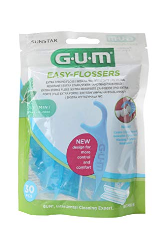 GUM Easy Flossers - Porta filo interdentale cerato al mentolo, portatile, 30 bustine