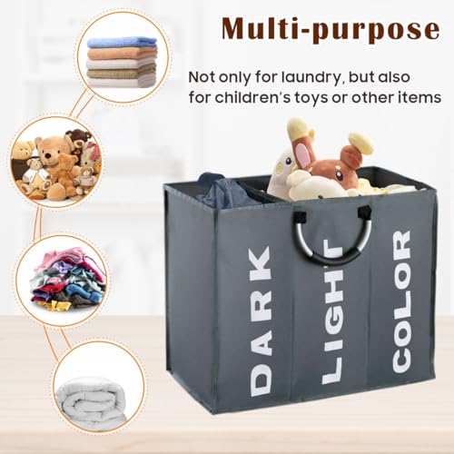 La borsa portabiancheria a 3 sezioni è realizzata in tessuto Oxford 600D può separare abiti scuri, chiari e colorati, evitando la tintura incrociata.