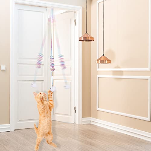 Easy Joy Giocattoli Interattivi per Gatti per Gatti da Interno, Giocattoli da Appendere alla Porta con Piume di Gatto con Campanelli e Molla per Gattini da Esercitare o Allenarsi (7 Pezzi)