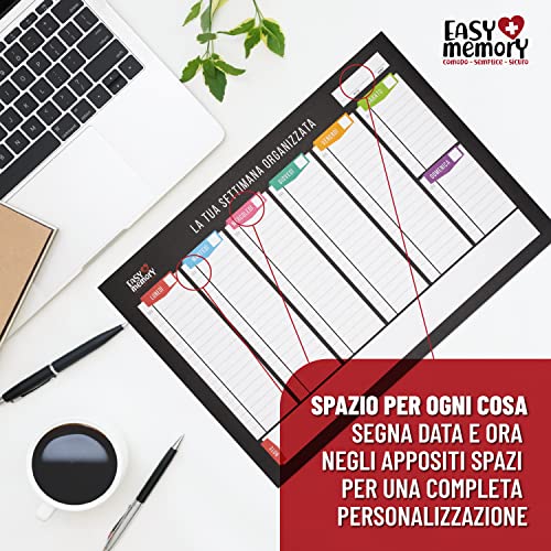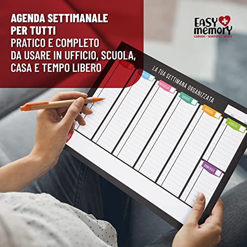 Easy Memory Planner Settimanale Scrivania - Planning da Tavolo A4 (30x21cm) con 52 Fogli a Strappo