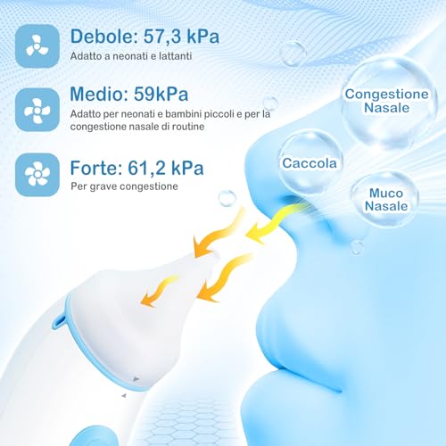 Modalità media: 59 kPa, adatta a neonati e bambini piccoli e congestione nasale di routine;