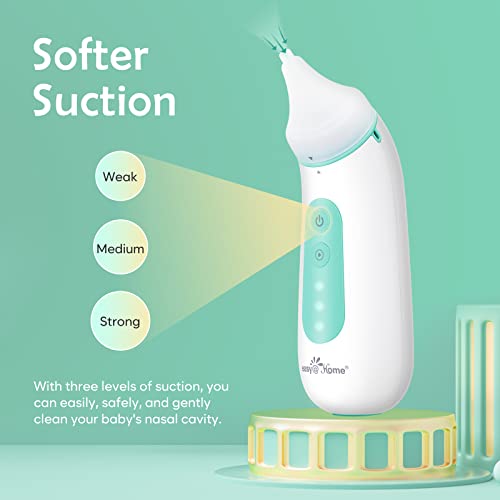 Easy@Home Aspiratore Nasale Neonato Elettrico Visivo: Rimuovi Delicatamente Muco e Caccole dal Naso del Bambino e Allevia la Congestione Nasale, Aspirazione a 3 Livelli con 2 Ugelli & 1 Pinzetta
