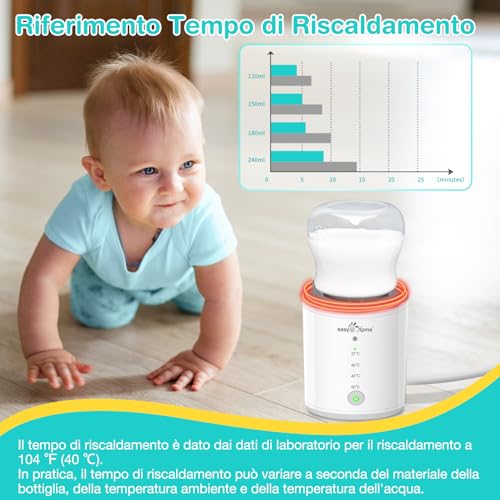 Lo scaldabiberon portatile Easy@Home rende molto più semplice per le mamme preparare il latte per bambini e l'acqua distillata alla temperatura adeguata di 37°C, 40°C, 45°C o 50°C in qualsiasi momento e ovunque. Lo scalda biberon neonato aiuta a liberare il cuore e il tempo delle mamme durante l'allattamento.