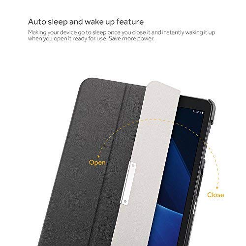 EasyAcc - Custodia in pelle per Samsung Galaxy Tab A6 10.1 2016, ultra sottile con funzione di supporto e funzione di accensione e spegnimento automatico, perfetta per Galaxy Tab A 10.1 pollici T580/ T585, colore: Nero