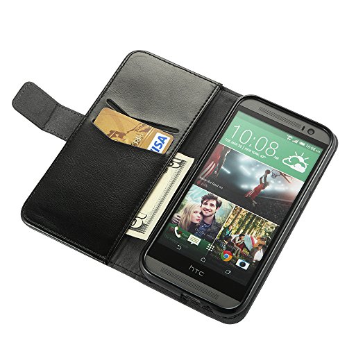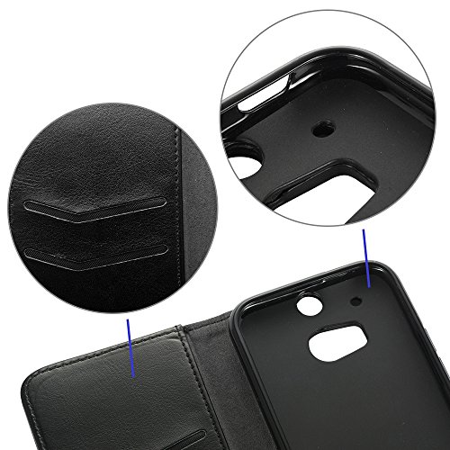 EasyAcc PU Leather Case for HTC ONE (M8) Leather Wallet Case Folio Flip Cover with Stand Card Holder Anti Shock Protective Cover Case Pouch for HTC ONE M8 Accessories (Black)