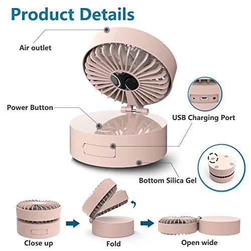 EasyAcc Mini Ventilatore Collo Portatile,2600mAh USB Ventilatore Pieghevole Scrivania Ricaricabile Batteria Sospeso Mano Libera Ventilatore Ventola 180°Rotante 6-18 ore 3 velocità Viaggi Campeggio